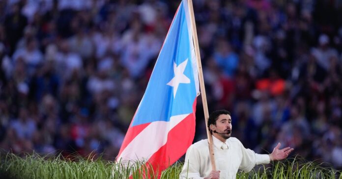 As he exited at the end of the show, trailed by U.S. and Puerto Rican flags and the flags of nations across the Americas, the message on a giant screen across the field read: “The only thing more powerful than hate is love.”
