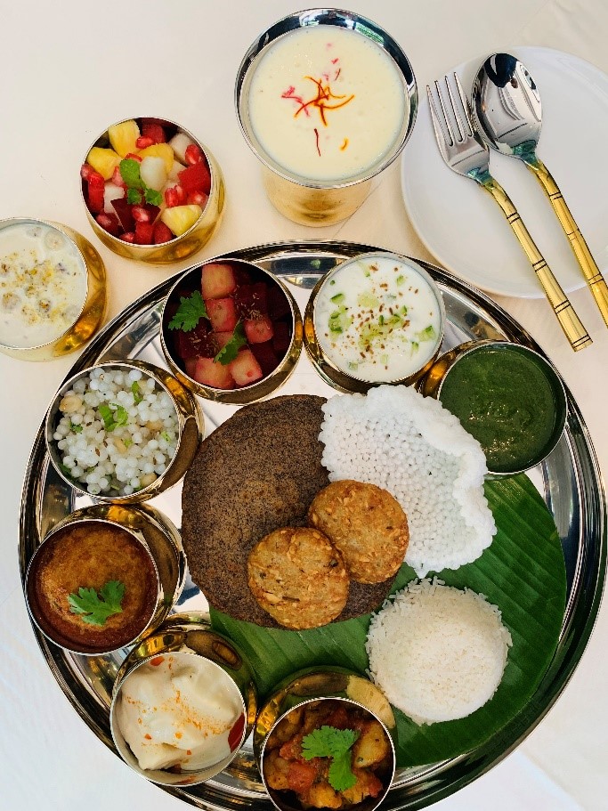 Amid the Himalayan peaks, The Westin Resort & Spa, Himalayas, offers a fasting-friendly thali that blends festive flavours with wellness, celebrating sattvik “vrat ka khana” in its purest form. The menu includes Seasonal Fruit Salad, Kuttu or Singhara Puri/Pakode, Sabudana Khichdi/Vada, and Kheer — dishes crafted to be light, pure, and spiritually uplifting.