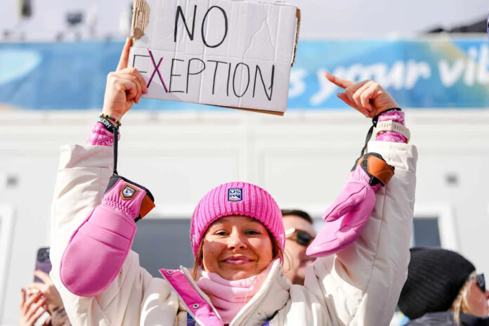 There, his sister, fellow Nordic Combined skier Annika Malacinski, supported him — while protesting the event